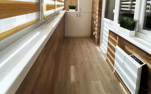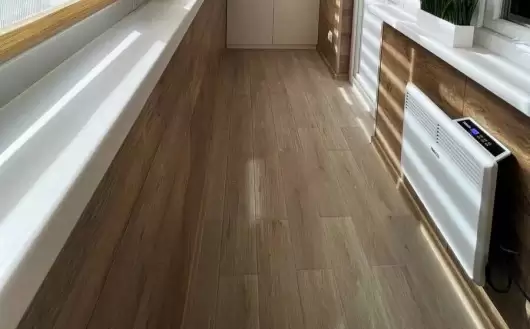 Интересный отделочный материал — кварцвинил - был выбран нашим заказчиком для отделки лоджии. Наша компания, имеющая богатый опыт в области отделочных работ, приняла заказ. Работы были проведены с соблюдением всех технологических норм и стандартов; благодаря профессионализму наших мастеров результат превзошел все ожидания клиента. Теперь его лоджия стала комфортнее, а эстетичный вид кварцвинилового покрытия добавила интерьеру особую изысканность. В рамках проекта также был сделан и установлен шкаф и проведена электрика..